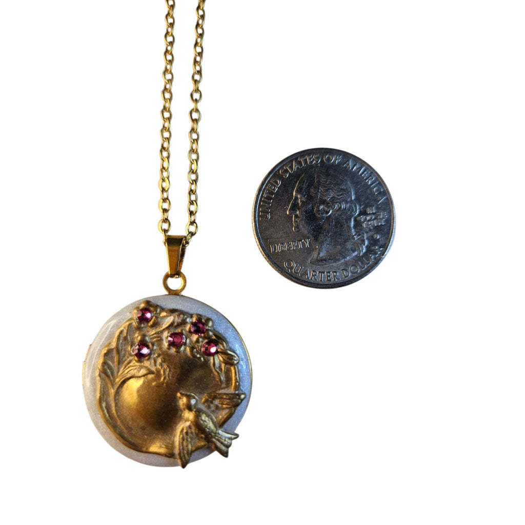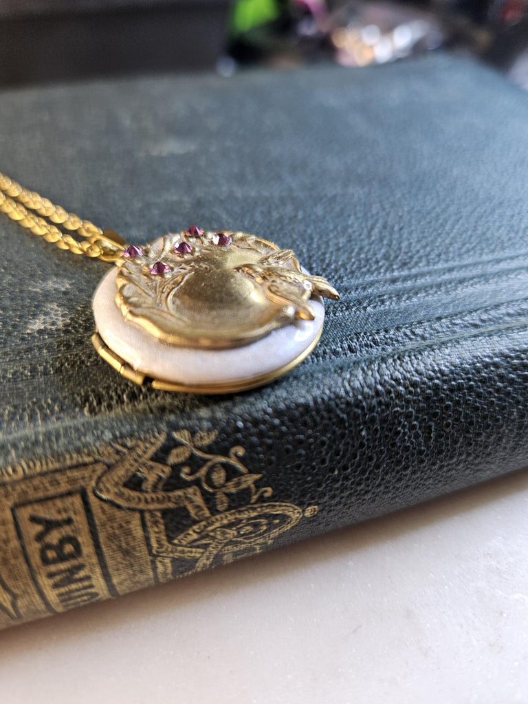 Photo Locket: Dove Cream Enamel, Pink Crystals