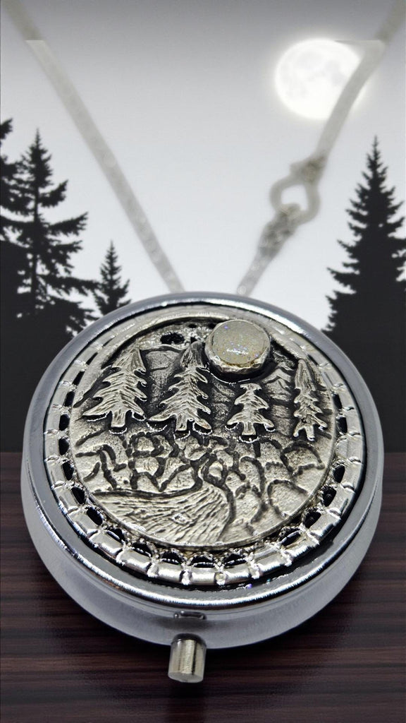 Forest Moon Music Box Locket Necklace: Silver Tone Pendant